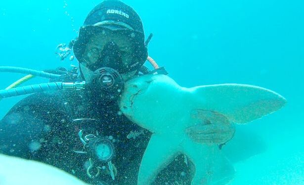 Köpek balığı Anderson’a o kadar alışmıştı ki ona sarılması için adeta