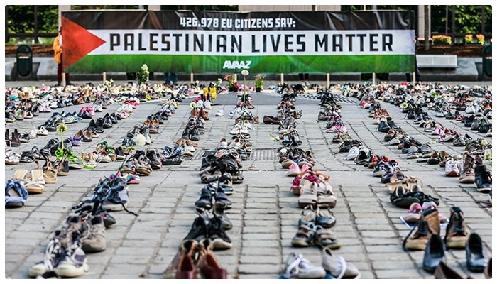 Avaaz sivil toplum kuruluşu tarafından organize edilen eylem, Avrupa Birliği binası önünde gerçekleştirdi. STK, son 10 yılda İsrail tarafından öldürülen Filistinlilerin sayısı kadar çift ayakkabıyı, bina önüne sıraladı. Ses getiren eylemin, AB Dışişleri Bakanlarının Gazze’de yaşananlarla ilgili yapacağı toplantının düzenleneceği tarihte yapılması da eylemin etkisini artıran etkenlerden biri oldu.