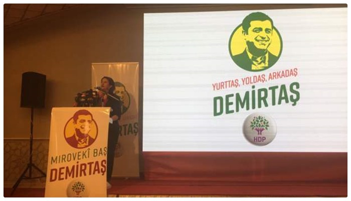 Buldan, “HDP’nin adayı Edirne F tipi cezaevinde rehin olarak tutulan İstanbul milletvekili Sayın Selahattin Demirtaş. En önemli ittifak Kürt halkının ittifakıdır. Kürt halkı yıllardır bu coğrafyada çok büyük acılar yaşadı, bedeller ödedi. Kürt halkını görmezden gelip muhatap almayanlar, tasviyesini isteyenler şunu bilmeli: Kürt halkı yanlız değil, birlik beraberliğini sağlamıştır. Bu onun resmidir” dedi.