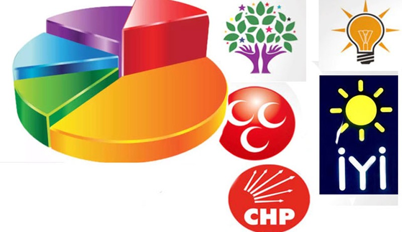 yüzde 34.8, MHP yüzde 7.3, CHP yüzde 23.4, İYİ Parti yüzde 17.2, HDP yüzde