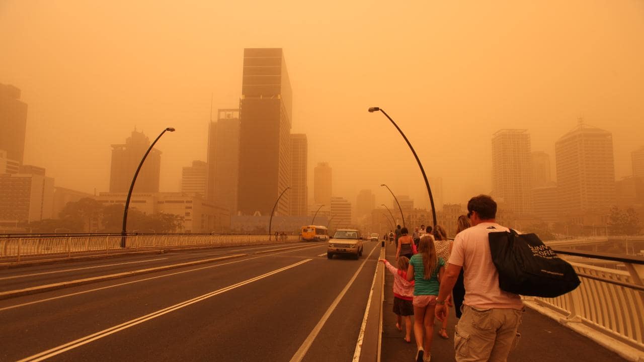 etkili olan büyük toz fırtınası Sydney’e ulaştı. İç hatlardaki uçak seferleri
