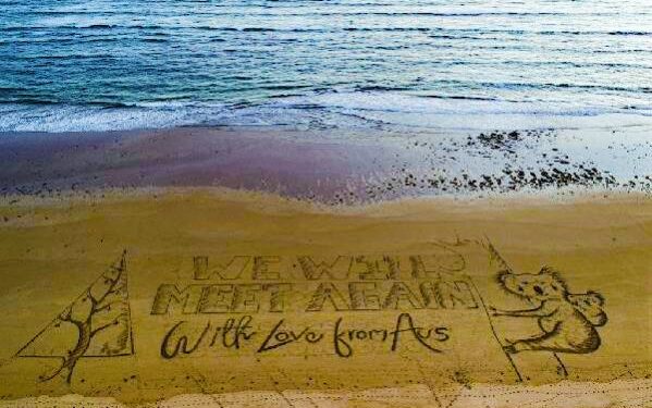 Avustralya’da kumdan eserler yapan ve Edward ismiyle tanınan kum resimleri sanatçısı, Avustralya hükümetiyle ile işbirliği içinde Geelong, Victoria yakınlarındaki Raafs plajına 70 metreye 40 metre uzunluğunda Noel kartı çizdi. Avustralya’nın sembollerinden anne ve bebek kolalanın da bulunduğu dev Noel kartında “Tekrar buluşacağız, Avustralyalılardan sevgilerle” yazıldı.
