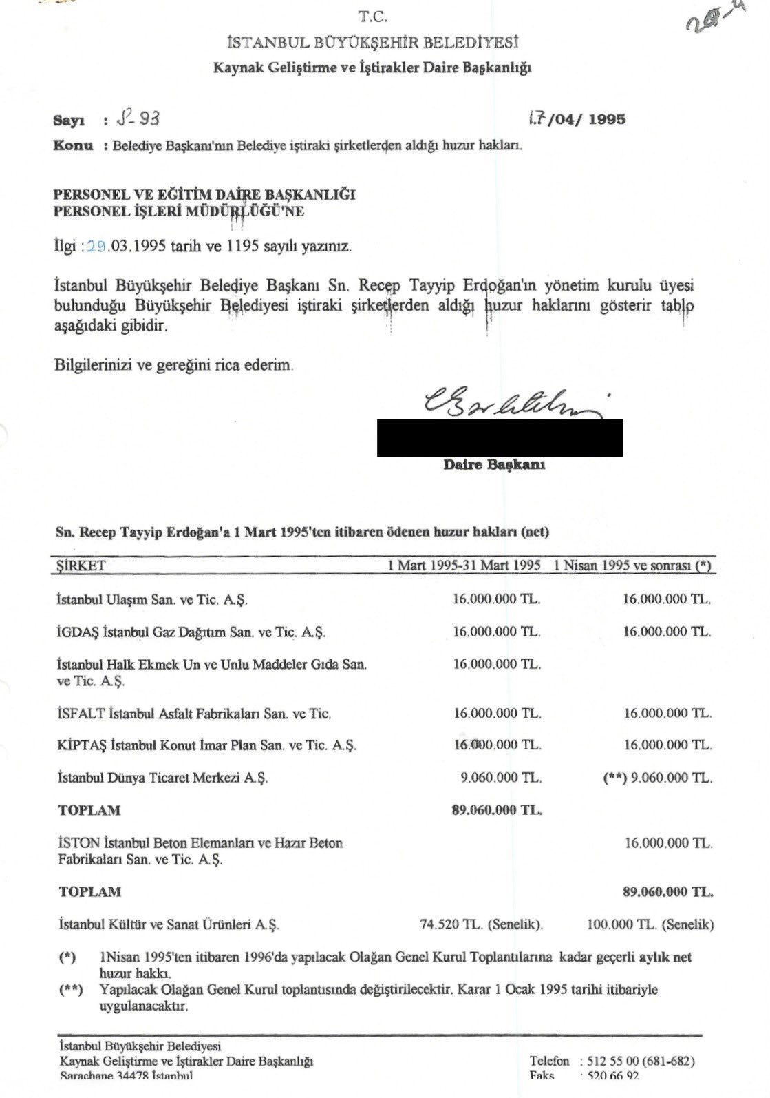 CHP Genel Başkan Yardımcısı Deniz Yavuzyılmaz ise söz konusu iddialara ilişkin yukarıdaki belgeyi sosyal medya hesabından paylaştı. Yavuzyılmaz, paylaştığı belgeye ilişkin olarak şunları yazdı: “Cumhurbaşkanı Tayyip Erdoğan’ın İstanbul Büyükşehir Belediye Başkanı olduğu dönemde Belediye Başkanlığı maaşına ilave olarak aynı anda 7 ayrı şirketten daha huzur hakkı aldığını tespit ettik. Her ay toplam 8 maaş.”