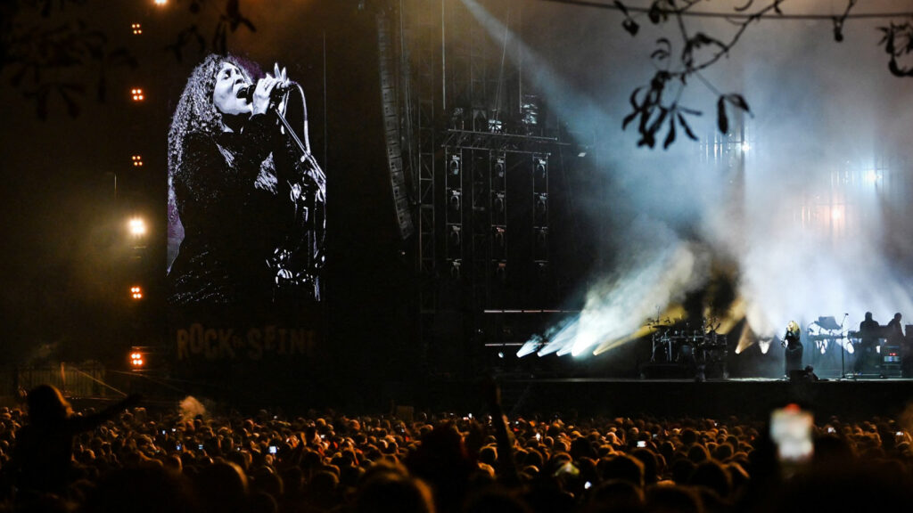 A general view shows singer Shara Nelson performing with British band Massive Attack during the 20th edition of the Rock en Seine festival in Saint-Cloud, outside Paris, on August 24, 2024. (Photo by Samantha DUBOIS / AFP)