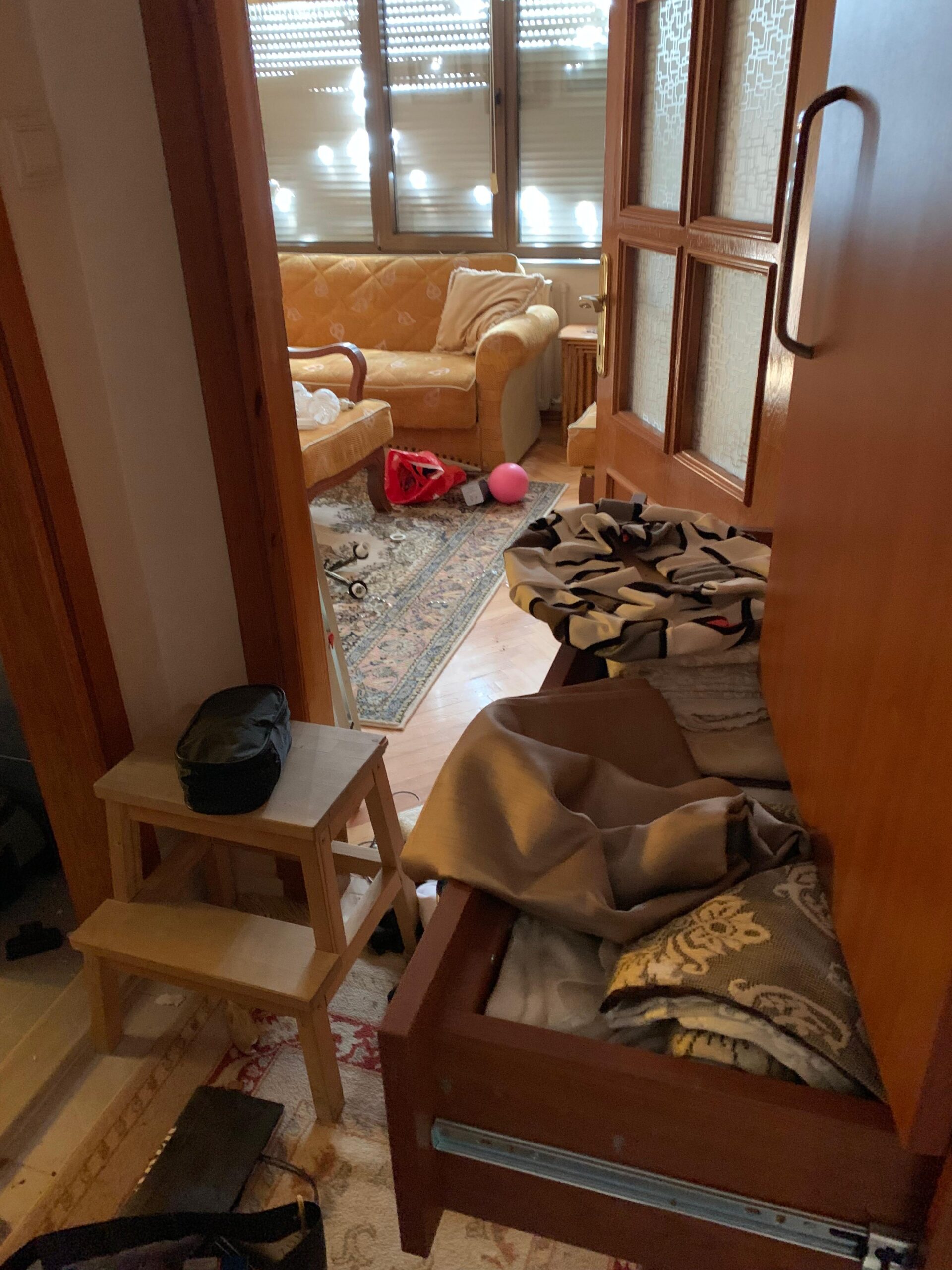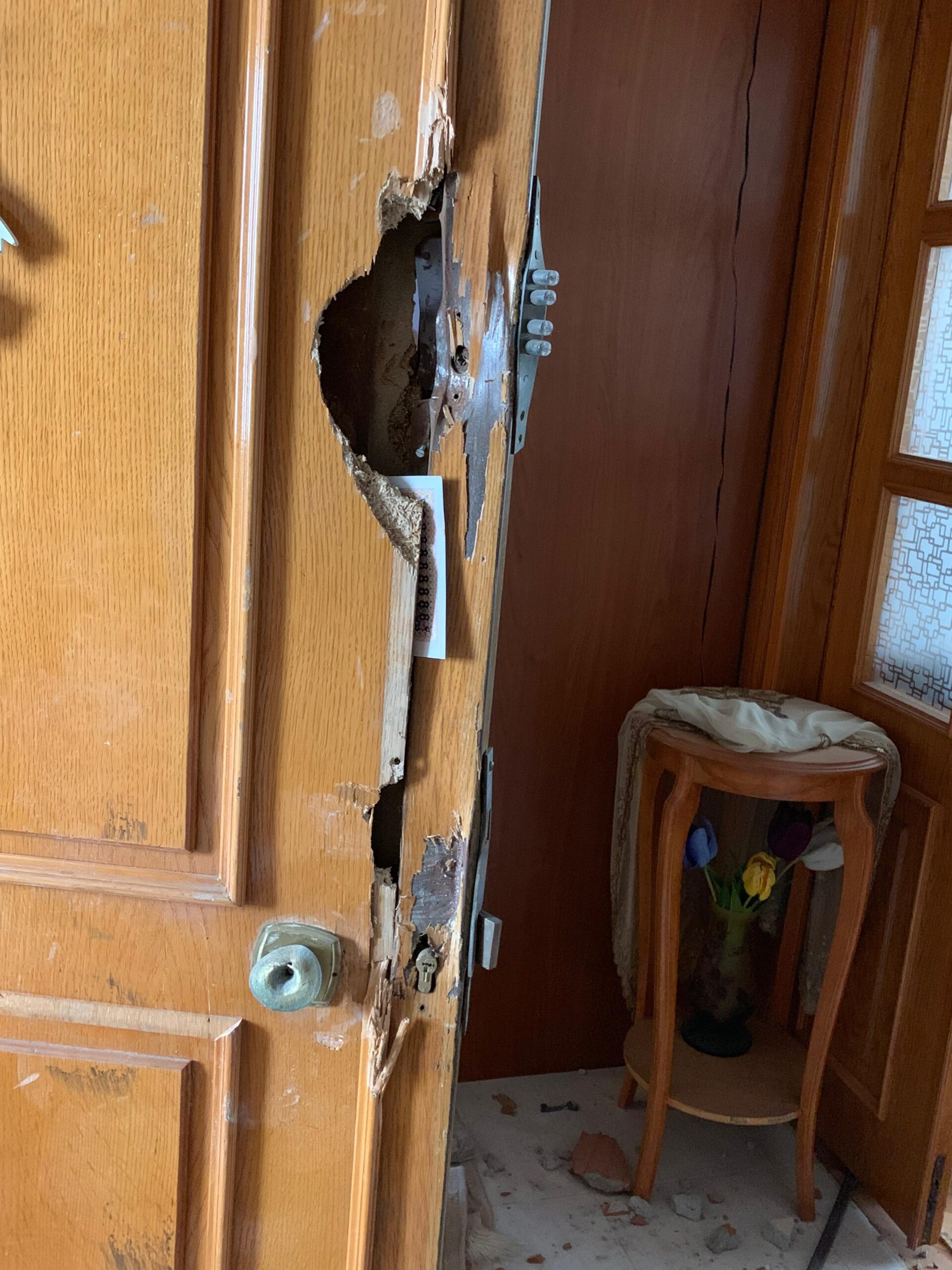 15 Temmuz’un karanlık günlerinde başına ne geleceğini bilmediği için annesinin yanında kalan Gülen, 4 gün sonra evine gidebildiğinde, önce sarı renkli “OLAY YERİDİR, GİRİLMEZ” bantlarının çekildiğini görünce şok oldu, sonra koç başıyla kırılan kapısının girişinden itibaren bu korkunç manzarayla karşılaştı.