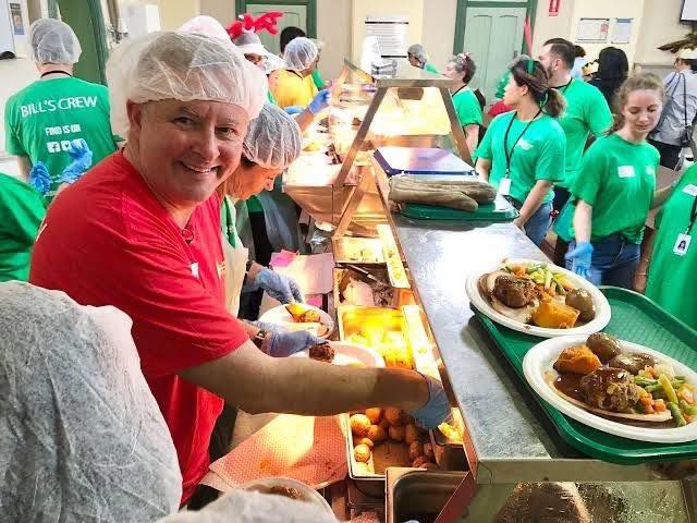 Federal Başbakan Anthony Albanese, Noel Günü Sydney’deki Rev Bill Crews Foundation (Exodus Foundation) etkinliğinde önlüğünü takıp yemek servisine katıldı.