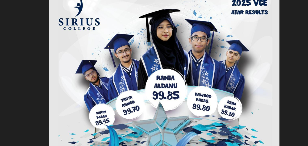 Melbourne merkezli Sirius Eğitim kurumları’nın 2025 VCE sonuçları, okul tarihinde öne çıkan yıllardan biri olarak kayda geçti. Öğrenciler, ATAR puanlamasında eyaletin en yüksek başarı dilimlerinde yer aldı. Aynı zamanda okulun birincisi  Rania Aldanu, 99.85 ATAR ile Victoria genelinde en başarılı öğrenciler arasında yer aldı.Diğer yüksek başarı gösteren öğrencilerden bazıları: