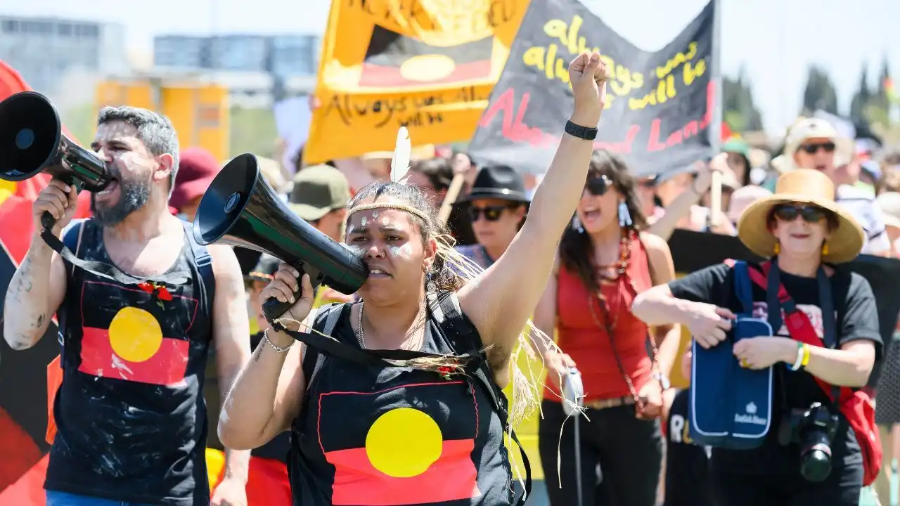 Canberra’da yüzlerce protestocu Parliament House önünde toplandı. “Always was, always will be” sloganları atılırken, protestocular daha sonra Aboriginal Tent Embassy’ye yürüdü. Yetkililer, Parlamento Üçgeni çevresinde yoğun polis önlemleri alındığını açıkladı.