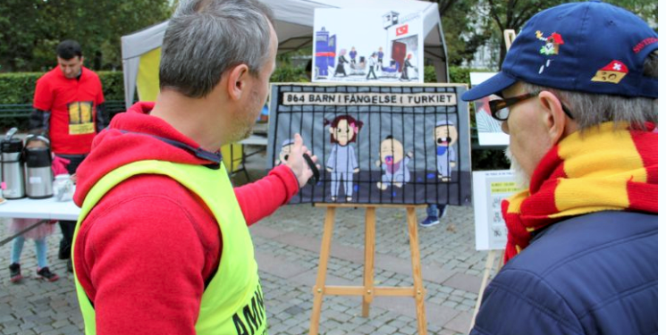 İsveç’in Malmö kentinde aktivistler, AKP iktidarını resim sergisiyle protesto etti. Türkiye’deki hukuksuz tutuklamalar, cezaevlerindeki işkenceler, 30 bin tutsak ve 864 bebeğin özgürlüğünü konu alan resimler sergilendi.