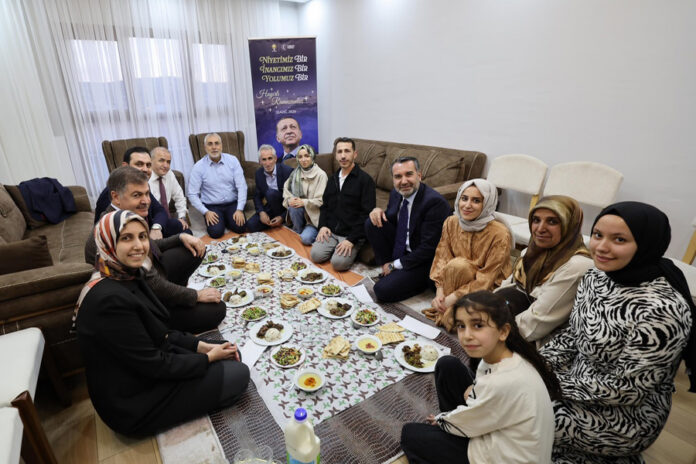 AKP, Ramazan ayı boyunca “Yeni Evim, İlk İftarım Programları” kapsamında, 6 şubat depremlerinden etkilenen vatandaşları teslim aldıkları evlerde ziyaret edeceğini, iftar sofralarına konuk olacağını duyurdu.Çalışma ve Sosyal Güvenlik Bakanı Vedat Işıkhan bu kapsamda Elazığ’da Yıldırım ailesini ziyaret etti. İftar sofrasını sosyal medya hesabında paylaşan Bakan Işıkhan, “Ramazan’ın bereketini Elazığ’da Yıldırım ailesinin iftar sofrasında paylaştık. Sayın Cumhurbaşkanımızın liderliğinde, tüm gücümüz ve imkanlarımızla depremden etkilenmiş her bir kardeşimizin yanında olmayı sürdüreceğiz. Misafirperverlikleri için Yıldırım ailesine teşekkür ediyor, Rabb’imden bol ve bereketli rızıklar diliyorum” ifadelerini kullandı.Bakan Işıkhan’ın paylaştığı fotoğraflarda ise aile ziyaretlerine, Erdoğan’ın fotoğrafının ve imzasının bulunduğu “Niyetimiz bir, yolumuz bir, inancımız bir” yazılı afiş ile gidildiği ortaya çıktı.