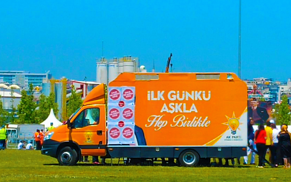 Fetih kutlamaları için Yenikapı meydanına gelen bir AK Parti aracındaki Davutoğlu resminin, üstüne yapıştırılan afişlerle kapatılması dikkat çekti.Fetih kutlamaları için Yenikapı meydanına gelen bir AK Parti aracındaki Davutoğlu resminin, üstüne yapıştırılan afişlerle kapatılması dikkat çekti.