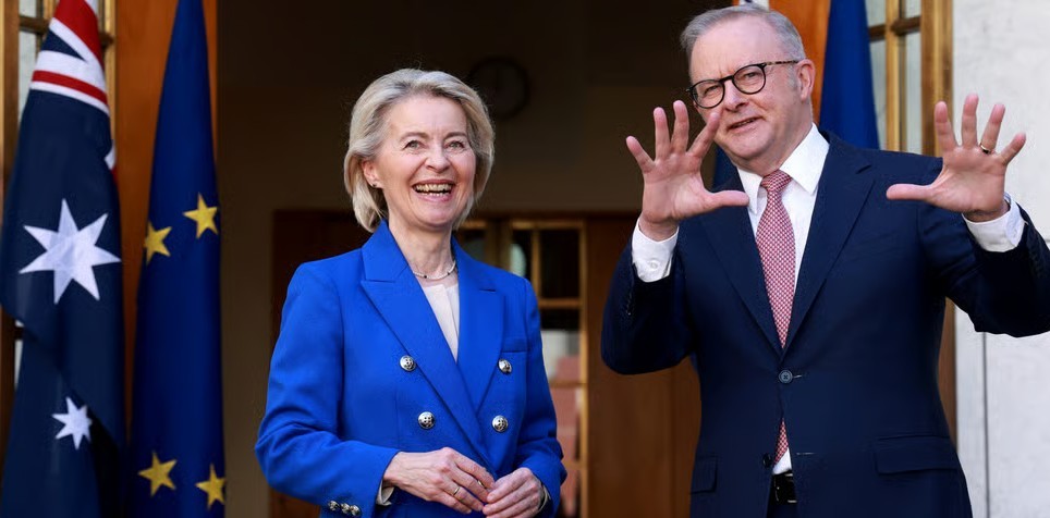 Avrupa Birliği ve Avustralya, sekiz yıl süren müzakerelerin ardından kapsamlı bir serbest ticaret anlaşması imzaladı. 7 milyar dolar değerindeki anlaşma, Avustralya Başbakanı Anthony Albanese ve AB Komisyonu Başkanı Ursula von der Leyen tarafından “her iki taraf için de kazan-kazan” olarak nitelendirildi.