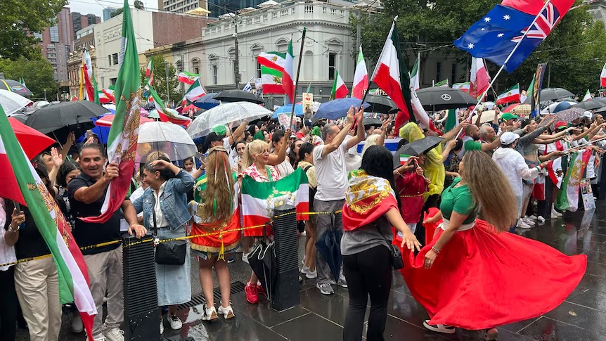 Çeşitli nedenlerle İran’daki baskılar nedeniyle Avustralya’ya göç eden İranlılar, Ali Hamaney’in ABD ve İsrail tarafından düzenlenen ortak hava saldırısında öldürüldüğünün resmen açıklanmasının ardından bugün sokaklara çıktı.