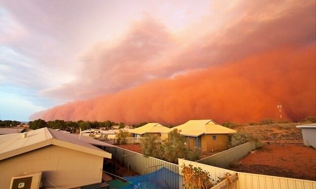 kuzeyinde, şiddetli rüzgarın havalandırdığı kumlar her şeyi yuttu. Görüş