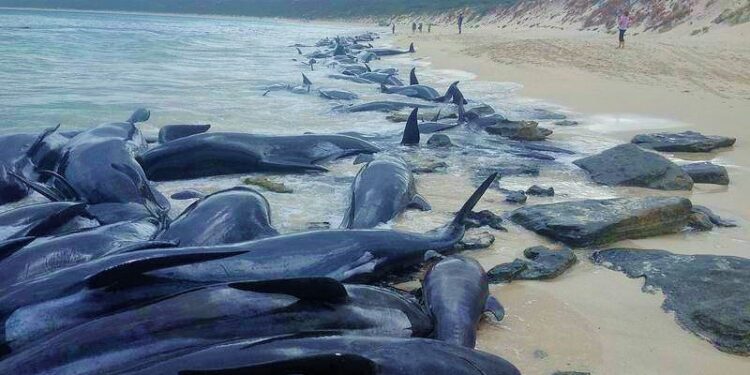 Avustralya’da 150 kısa kanatlı pilot balinanın karaya vurduğu