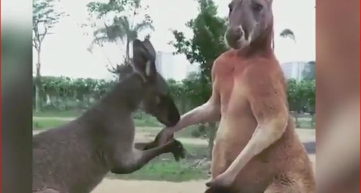 <h5 style="-webkit-font-smoothing: antialiased; margin: 0px 0px 16px; padding: 0px; border: 0px; vertical-align: baseline; line-height: 26px;"><b><br></b></h5><h5 style="-webkit-font-smoothing: antialiased; margin: 0px 0px 16px; padding: 0px; border: 0px; vertical-align: baseline; line-height: 26px;"><iframe frameborder="0" src="//www.youtube.com/embed/p56_AyOhLdY" width="640" height="360" class="note-video-clip"></iframe><b>Avustralya'da amatör kameraya yansıyan görüntülerde yetişkin kanguru, kendisinden küçük olduğu görülen bir başka kanguruya elini öptürüyor.</b></h5><h5 style="-webkit-font-smoothing: antialiased; margin: 0px 0px 16px; padding: 0px; border: 0px; vertical-align: baseline; line-height: 26px;"> Kızgın olduğu gözlenen kanguru, durumdan hoşnut olmamış olacak ki sonrasında kanguruyu tokatlıyor.</h5>