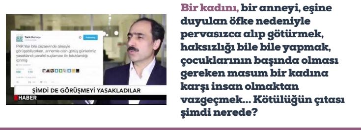 Uzun uzun anlattığımız bu olaylar, maalesef bütünün içinde küçük örnekler. Annelerin, yavrularının güven içinde olduklarını, temel ihtiyaçlarının karşılandığını bilmelerine, çocuklarında annelerinin şefkatli sesini duymaya, “Anne!” der demez yanında olduğunu görmelerine şiddetle ihtiyaçları varken, kaçma şüphesi bulunmayan sabit ikametgâh sahibi, haklarında kesin ve inandırıcı tek bir delil dahi bulunmayan, doğumdan yenice çıkmış annelerin gözaltına alınması, tutuklanması en hafif tabirle işkencedir. Şuursuz haldeyken dahi ağızları annelerinden gelecek sütü bulma çabasında olan tazecik bebekler aç bırakılıyorsa, bunun adı, soykırımdır.