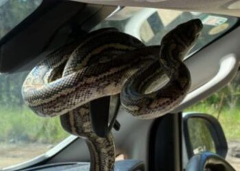 Brisbane’de aracın dikiz aynasına yerleşen yılan aileye panik yaşattı