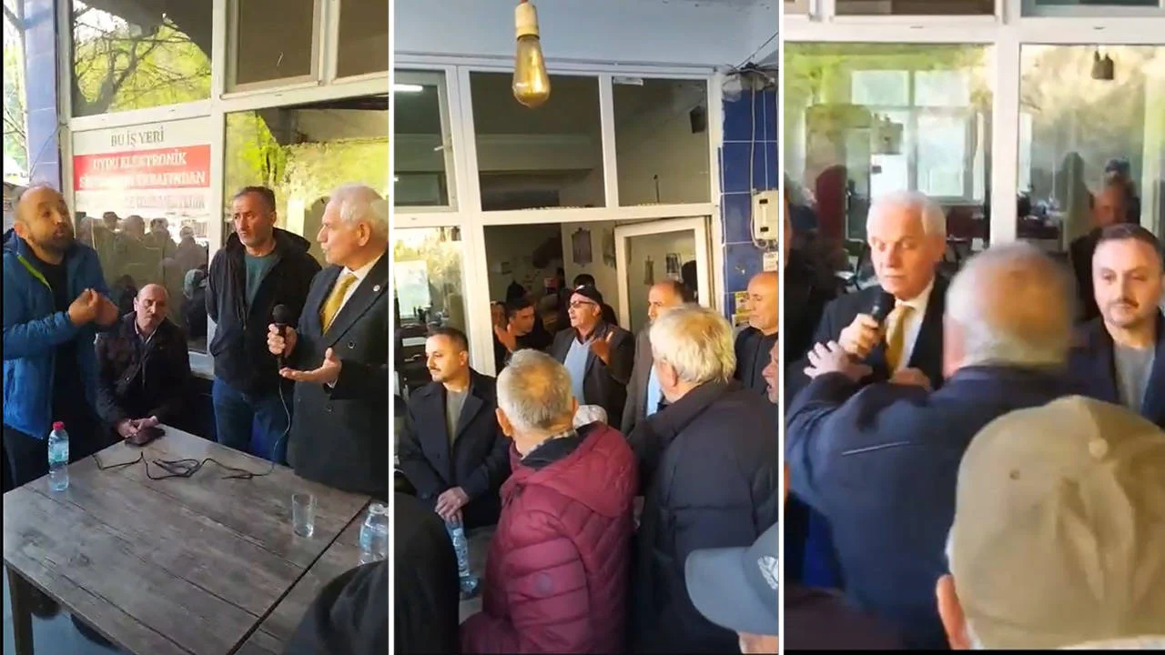 Memleketinde yuhalanan Elmas’ın sözü sık sık yurttaşların “Yazıklar olsun” tepkileriyle bölündü. Bölgeden görüntülerin iletildiğini öne süren Elmas’a yurttaşlar, en son ne zaman Çatalağaç’tan görüntülerin kendisine ulaştığını sordu. Elmas’ın “Bu ay geldi” cevabı üzerine bölge halkı, “Çatalağaç’ta daha ne olması lazım o halde müdahale edilmesi için? Burada boş boş konuşmaya gerek yok. Bölgeye gidelim, bakalım o zaman” dedi.