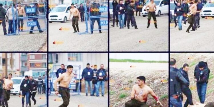 Diyarbakır’da 21 Mart günü düzenlenen Newroz kutlamasına katılmak üzere Malatya’dan kente gelen üniversite öğrencisi Kemal Kurkut’u alanın girişinde kurulan kontrol noktasında gazetecilerin gözleri önünde öldüren polis memuru Y.Ş. hakkında “olası kastla insan öldürme” suçundan müebbet hapis istemiyle açılan davanın ilk duruşması bugün Diyarbakır 7. Ağır Ceza Mahkemesi’nde görülecek. Duruşmanın başlaması öncesinde adliyenin çevresinde çok sayıda TOMA, akrep ve kirpi tipi zırhlı araç konuşlandırılırken, yer yer ağır silahlı polislerin adliye çevresinde devriye gezmesi dikkat çekti.