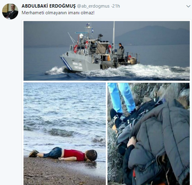 Diyarbakır Eski Milletvekili Abdülbaki Erdoğmuş, Ege’de daha önce Aylan bebeğin boğulma fotoğraflarıyla Maden ailesinin çocuklarının fotoğrafını paylaşarak, “Merhameti olmayanın imanı olmaz!” diye yazdı.