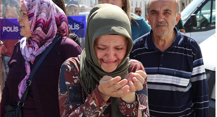 İl binası önünde bir araya gelen Harbiyeli anneler, yetkili biriyle görüşmek istediklerini belirterek bekleyişlerini sürdürdü. Bu sırada güvenlik şubede komiser olduğunu söyleyen bir kişi, “Çıkın gidin buradan” diye bağırarak, aileleri zorla alandan uzaklaştırdı. Polisin, “Oğlumu devlete verdim ve devletten istiyorum” diyen tutuklu Harbiye okulu öğrencisinin annesine, “Git başka yerde ara onu” demesi dikkat çekti. Kaçırılan Mustafa Yılmaz’ın eşi Sümeyye Yılmaz ise Ankara’da AKP İl Başkanlığı binasına gitti. Yılmaz, “Süleyman Soylu Diyarbakır’da oturuyor, biz ayağına gidiyoruz kabul etmiyor. 213 gündür 2 yaşındaki kızımla kapı kapı kocamı dilendim. Eşimi tabi ki devletten arayacağım. Devleti de AKP yönetiyor.” dedi.