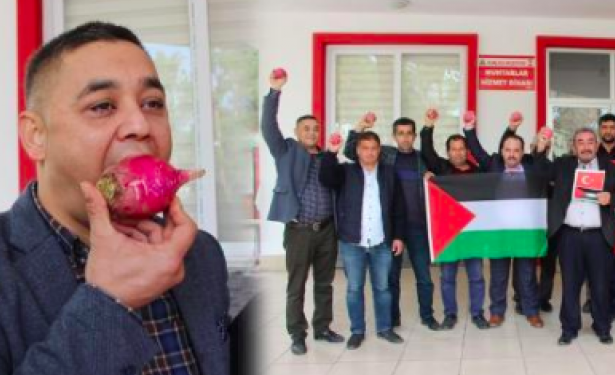 Muhtarlar açıklamanın ardından Trump’ı simgeleyen turplarla kararı protesto ederken, bazıları da üzerine ‘Trump’ yazdıkları turpları ısırarak tepkisini gösterdi.