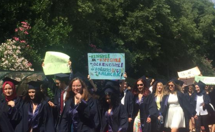15 Temmuz sonrası üniversitelere ve akademisyenlere yönelik baskının sembolu haline gelen Boğaziçi Üniversitesi’nde bol protestolu ve renkli bir mezuniyet töreni yaşandı.