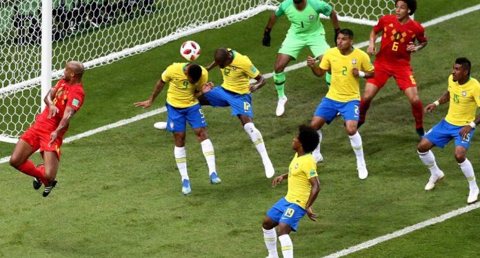 2018 Dünya Kupası çeyrek finalinde Belçika, Brezilya’yı Fernandinho (kk.) ve De Bruyne’nin golleriyle 2-1 mağlup etti. Brezilya’nın tek golü ise Renato Augusto’dan geldi.Bu sonucun ardından Belçika yarı finalde Uruguay’ı yenen Fransa’nın rakibi oldu.Dünya Kupası’nın favorisi Brezilya, karşılaşmayı Belçika’nın ilk 30 dakikada bulduğu iki golle 2-1 kaybetti. Belçika, yarı finalde Fransa’nın rakibi oldu.Belçika’nın gollerini, Fernandinho kendi kalesine ve Kevin De Bruyne attı. Sambacıların tek golünü ise Augusto kaydetti. Brezilya kendi ülkesinde düzenlenen 2014 Dünya Kupası yarı finalinde Almanya’ya 7-1 yenilmesinin ardından 2018 Dünya Kupası’nda da bir Avrupa takımına yenilerek elendi.Brezilya’nın elenmesiyle Dünya Kupası’nda sadece Avrupa’lı takımlar kaldı. Bundan dolayı Dünya Kupası’nı üst üstte üçüncü kez Avrupa takımının kazanacağı kesinlik kazandı.