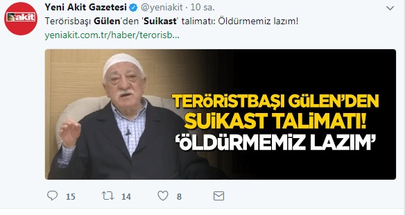 Gülen’in aktardığı ve “kapalı kapılar arkasında bunlar konuşuluyor” dediği, ‘çok önemli kişileri öldürmemiz lazım” sözleri çarpıtıldı. Haberlerde bu ifadelerin Gülen’e ait olduğu ve bu sözlerle taraftarlarına talimatı verdiği yalanı atıldı.