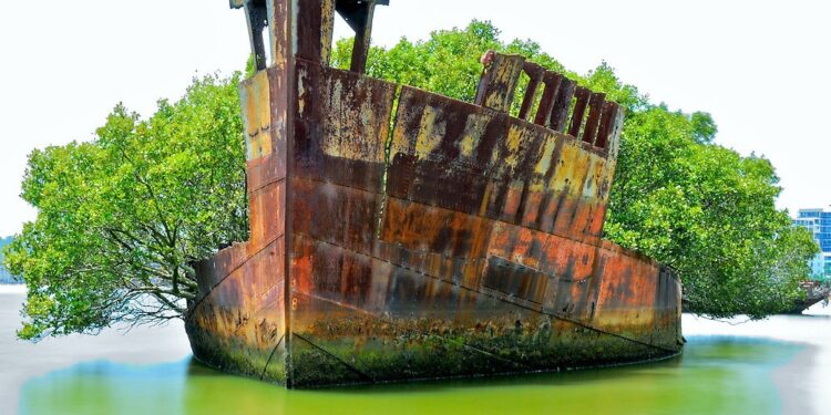 bitkiler için bir yuva olan gemi, görenleri masalsı görüntüsüyle büyülüyor.