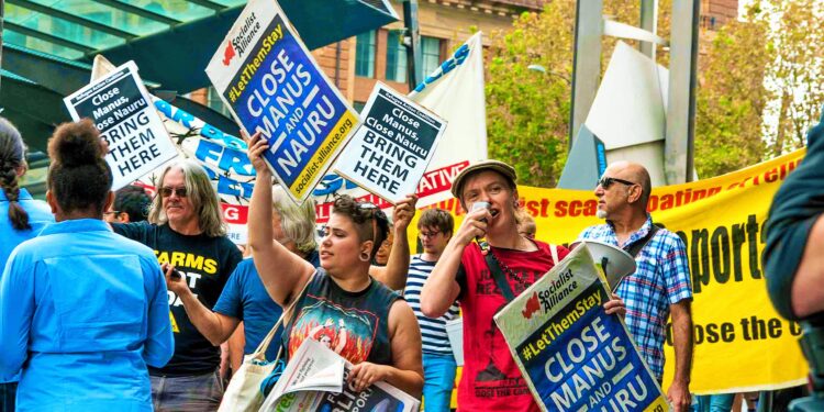 tepki gösteren göstericiler, Avustralya halkının, hükümetin mülteci