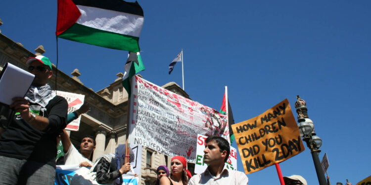 tanıma kararı, Avustralya’nın Melbourne şehrinde protesto edildi.