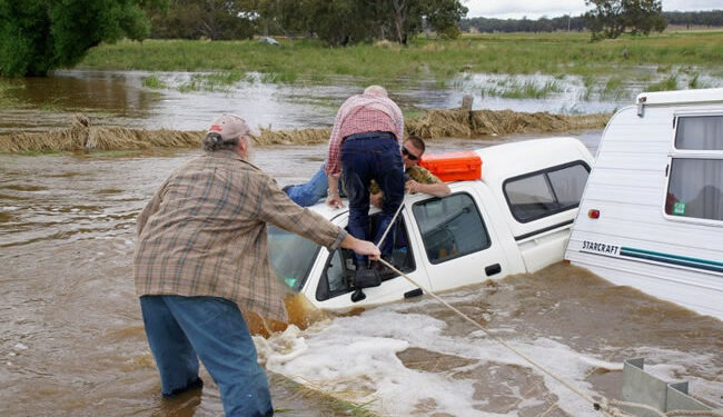 ve sel yüzünden birçok kasaba boşaltıldığı belirtildi. Victoria’da kötü hava şartları için tedbir almaya çalışan 12 kişi